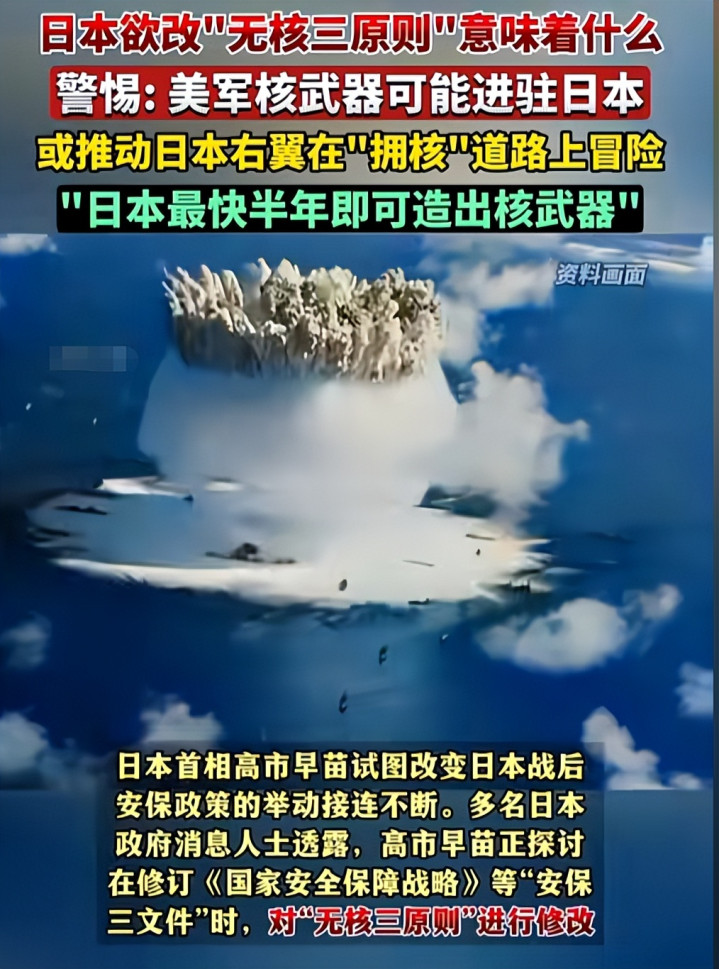 2025年以来日本政府推动修改“无核三原则”的传闻愈演愈烈,首相高市早苗的模糊表态引发了日本国内和平派的强烈反对。