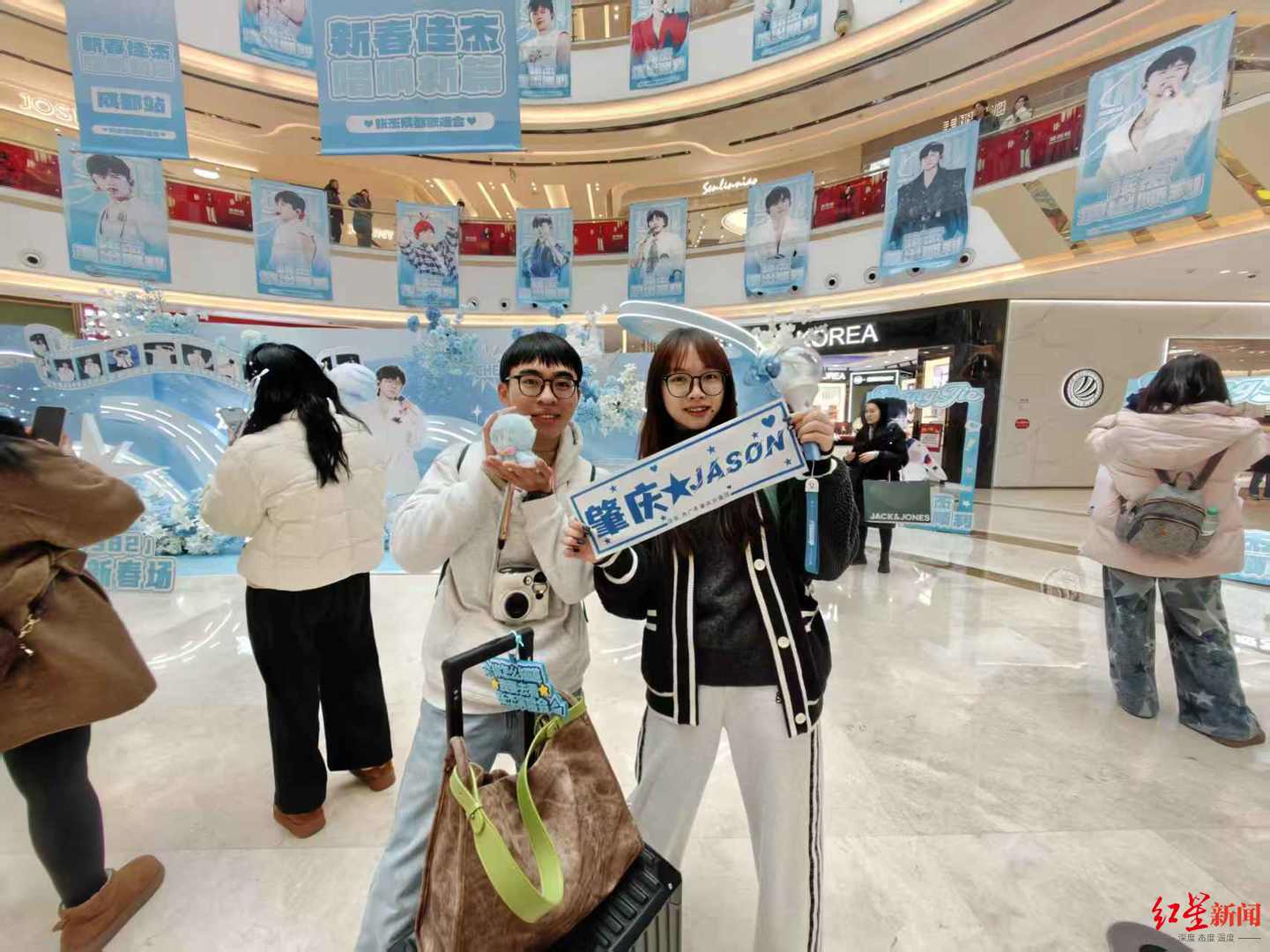 “我们是从杭州专程飞过来看演唱会的。我是早上到的,朋友宁宁是1月21日到的。正好现在学校放寒假,又是周六周日假期,我们准备明天回杭州。”在龙泉一处张杰应援场地内,歌迷秋秋兴奋地表示。秋秋透露,她喜欢张杰超过10年,“我每一次来成都,都是因为张杰。”这一趟,除了看演唱会,两人还品尝了不少美食:冒烤鸭、烤鱼和自贡菜。